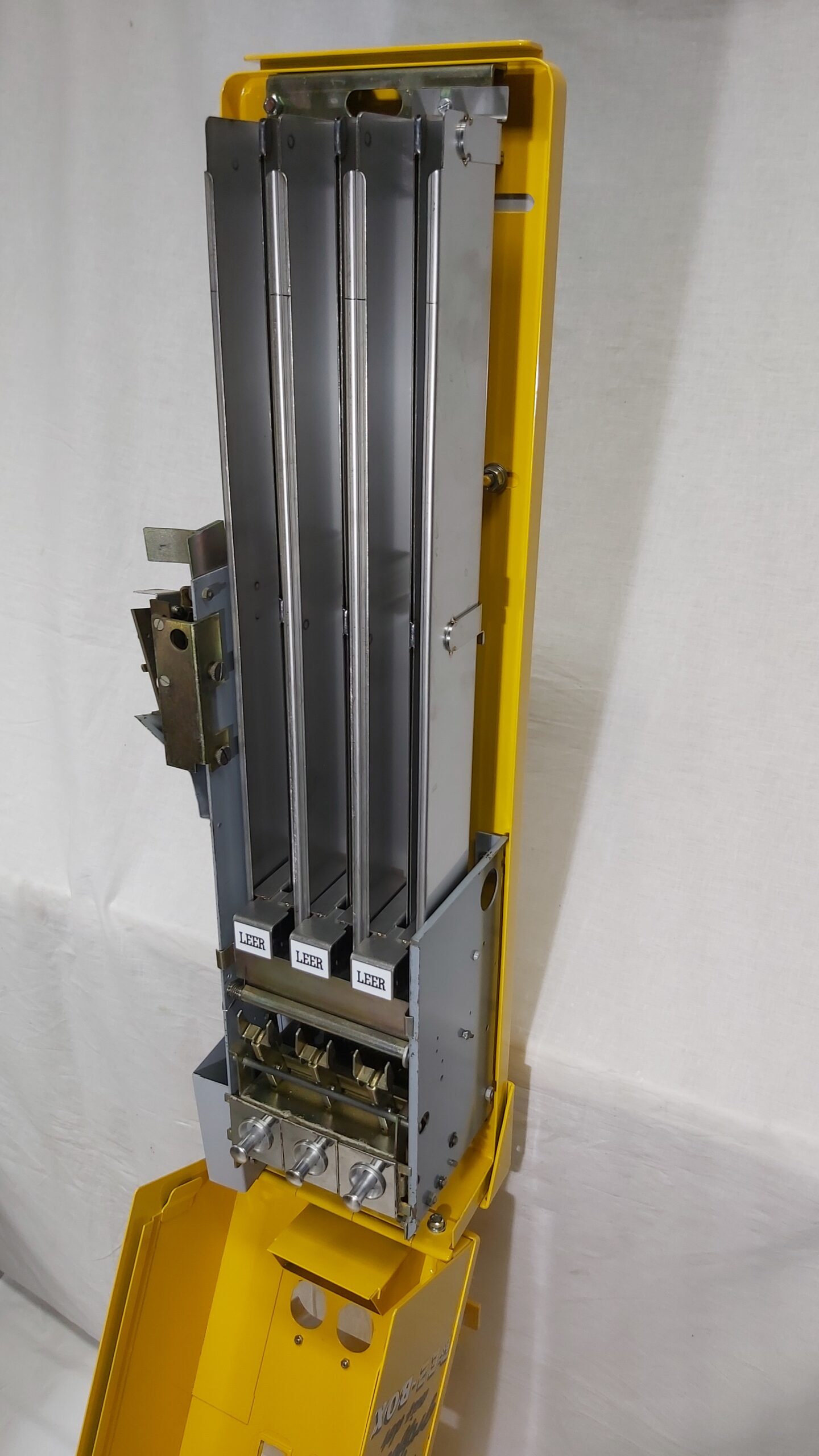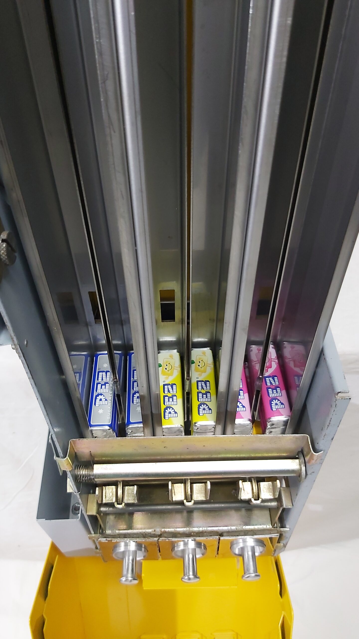 Ein neues Schloss inkl. 2 Schlüssel ist verbaut. Das Innenleben ist komplett inkl. der Gewichte für die Warenschächte und der Geldkassa aus Blech. Die Warenschächte und die Gewichte wurden aus Edelstahl originalgetreu nachgefertigt, um die normalen PEZ Stangen einfüllen zu können.