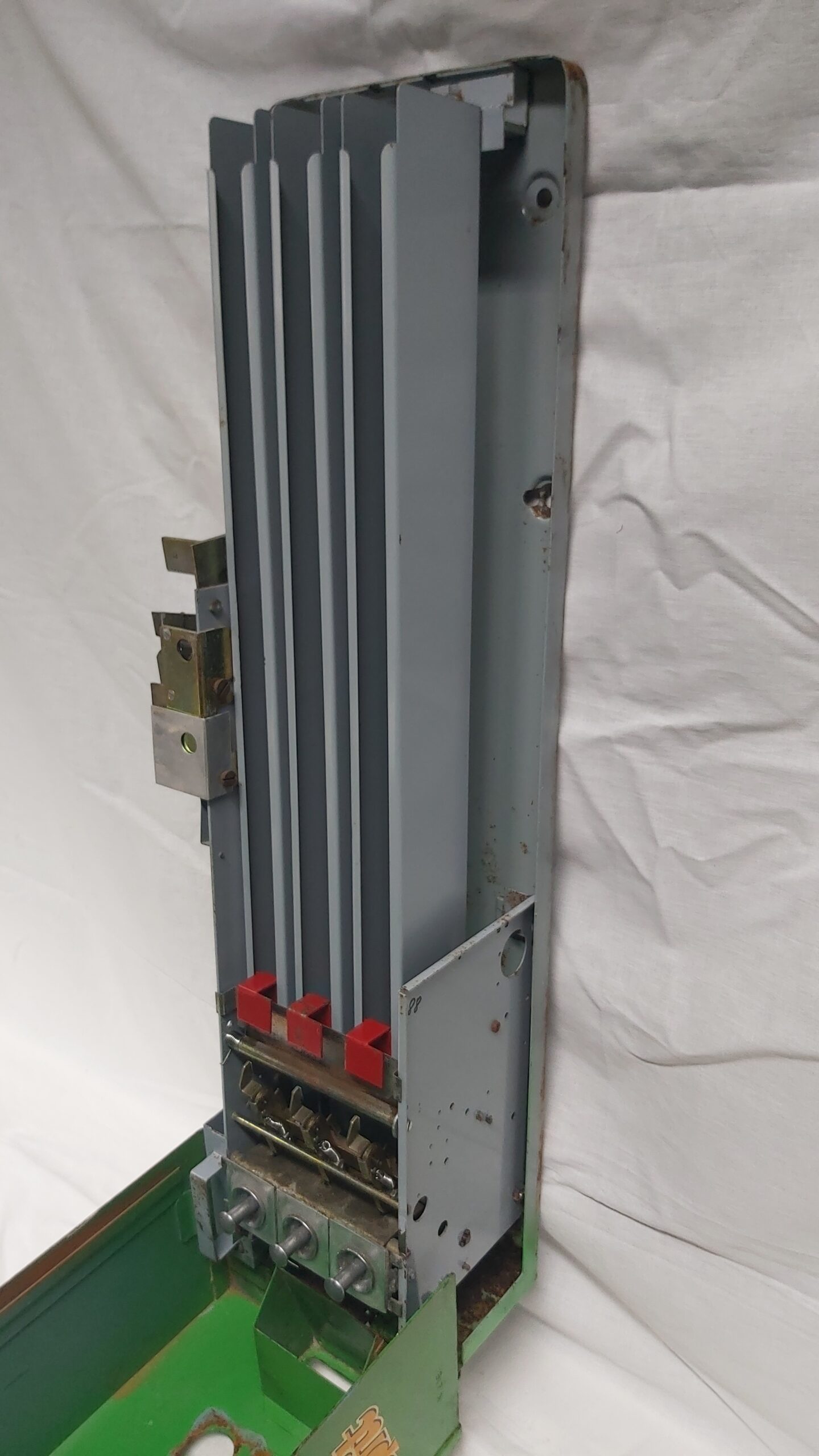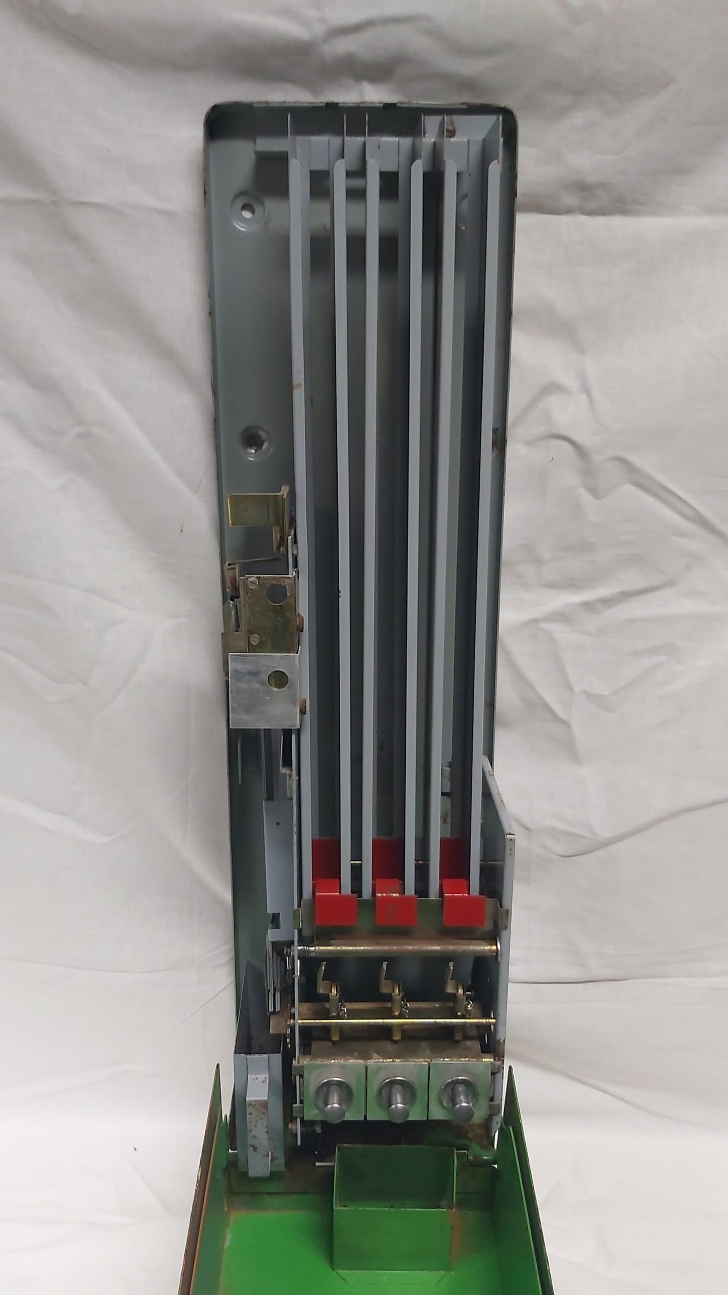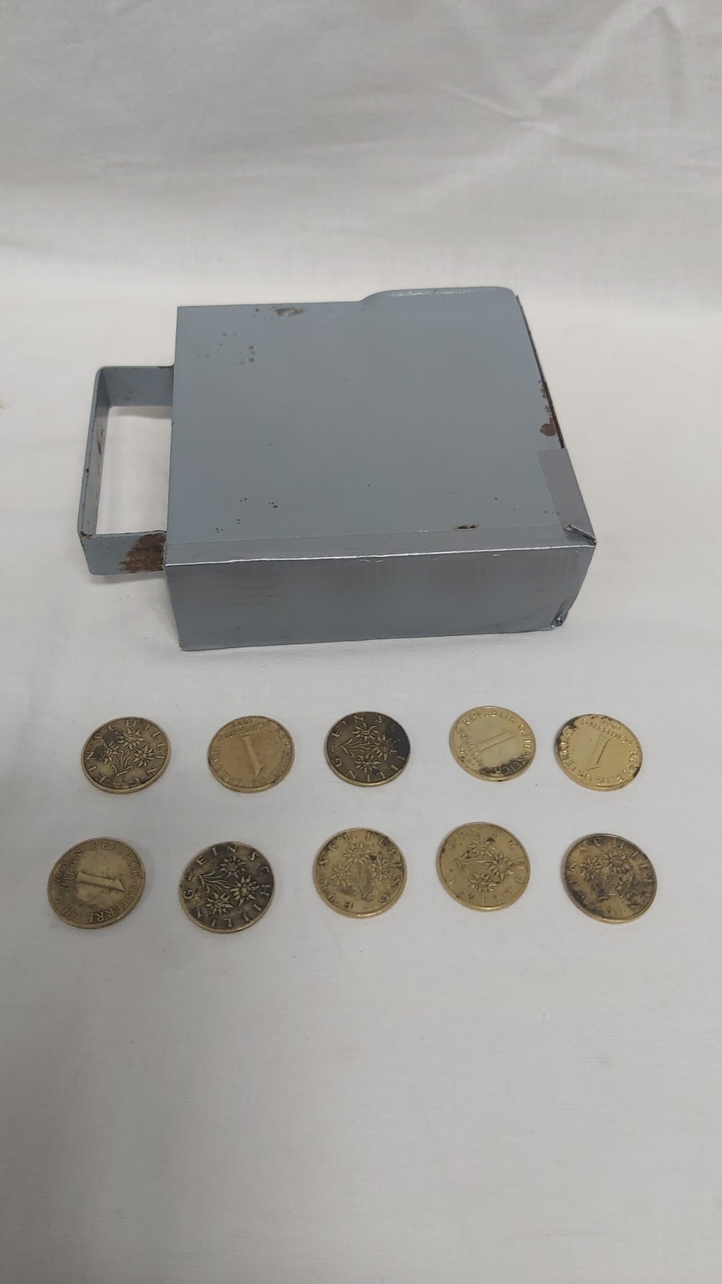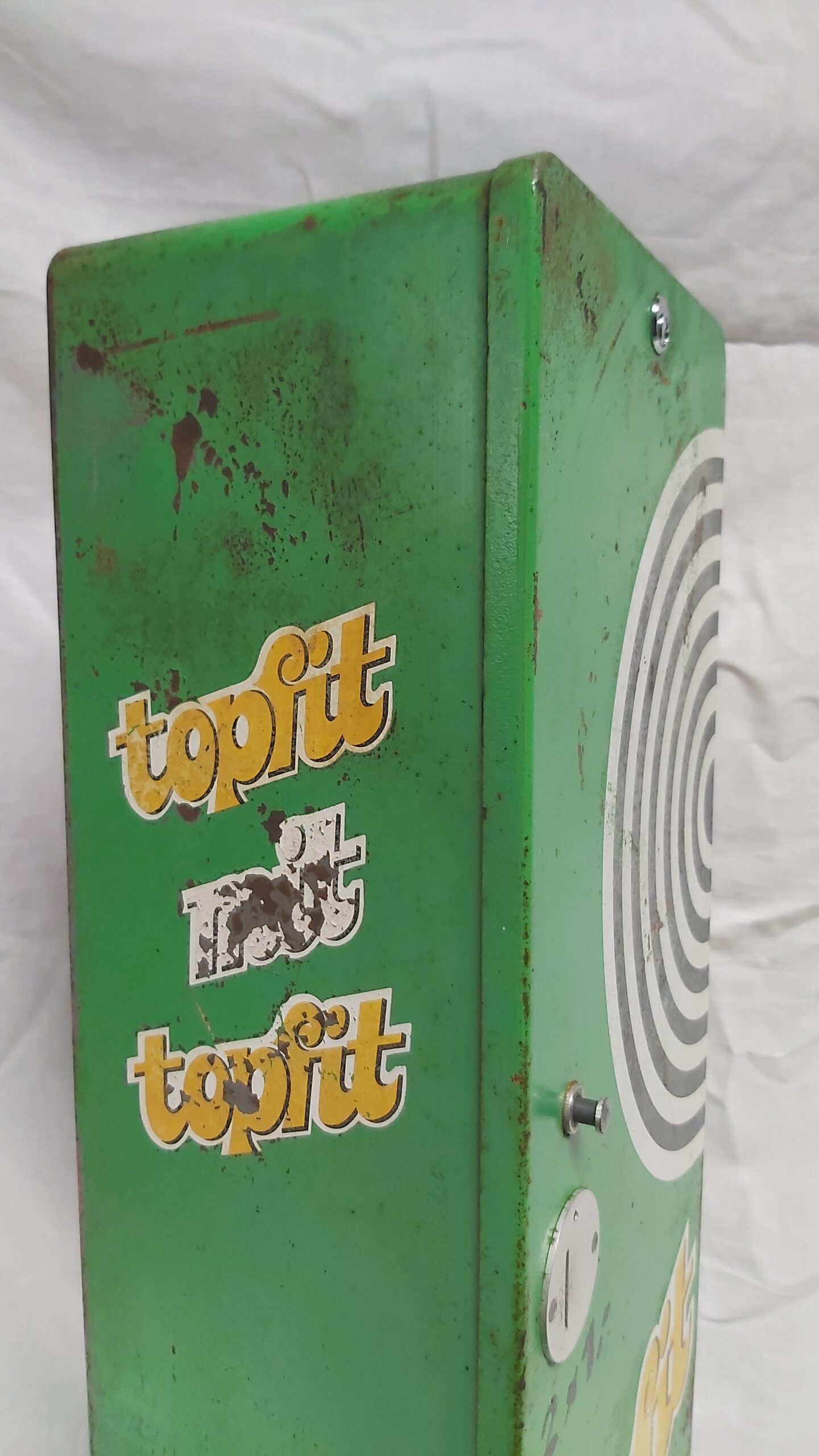 Warenautomat "TOPFIT" vom Hersteller Braun Automaten mit 2x1 Schilling Einwurf. Es sind 10 Stück 1 Schilling Münzen mit dabei. Der Automat wurde gereinigt, getestet und funktioniert.